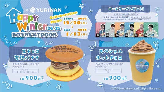 AppBank株式会社(本社:東京都新宿区、代表取締役:白石 充三、証券コード:6177)は2024/12/20(金)~2025/1/13(月)の期間で開催される「原宿竹下通り HappyWinter24-25 BOYNEXTDOOR」にて「BOYNEXTDOOR」 と「YURINAN -ゆうりんあん-」の店舗コラボレーションが決定いたしました!