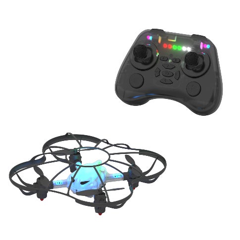 学習用コーディングドローンは、プログラミング初心者でも簡単に飛行コーディングが行える「カードコーディング」技術を搭載しています。ドローンに内蔵されたカラーセンサーが付属カードの色を読み取ることで、カードの指令通りにドローンが飛行し、楽しみながら操作やコーディングを学べる仕組みです。また、コントローラーには傾きセンサーが備わっており、傾けた方向にドローンが動く直感的な操作も可能です。