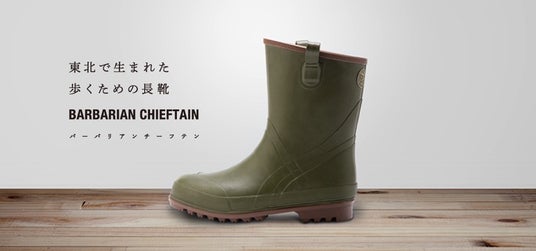 バーバリアンチーフテンは「日本人にベストなフィッティング」を基本コンセプトに、足の形と動きを追求したヘビーデューティーなラバーブーツです。耐久性、足入れ、質感を追求し、熟練のクラフツマンが通常の約3倍のパーツを使用し1足1足を手作りで製作しております。