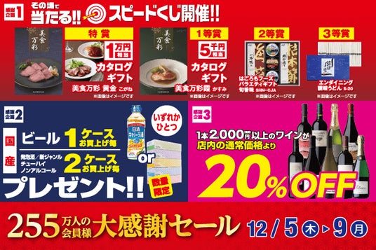 「1万円相当カタログギフト」など、豪華景品がその場で当たるスピードくじ!255万人の会員様 大感謝セール のお知らせ