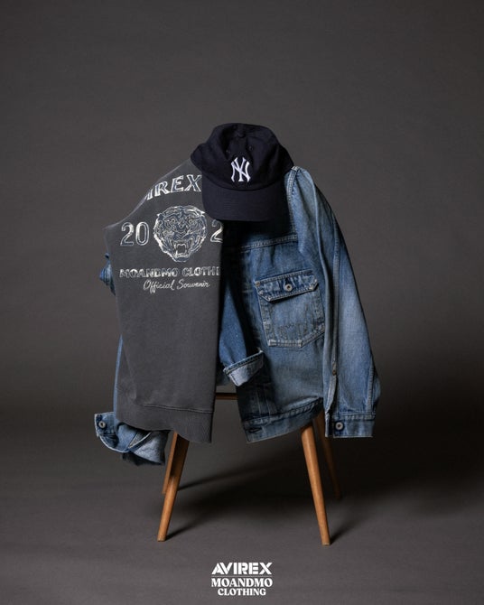 本コレクションは近年、日本のファッションシーンは基より、現地N.Yでも高い評価を受ける「AVIREX」のVARSITYラインと、「MOANDMO(R)CLOHING」を象徴するデニムラインを基軸にした4つのアイテムがラインナップされています。