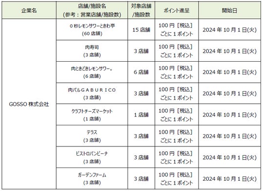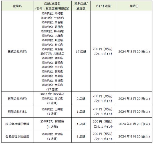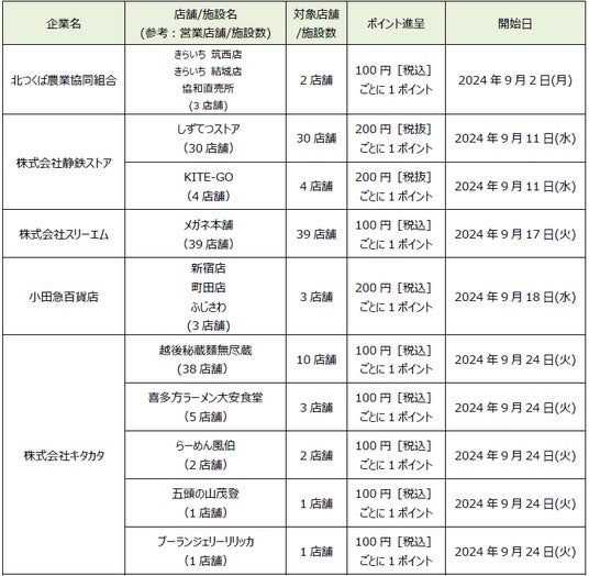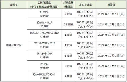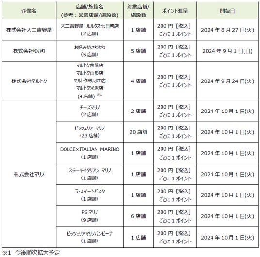 * 記載の店舗/施設数は、発表日現在の店舗/施設数となります。