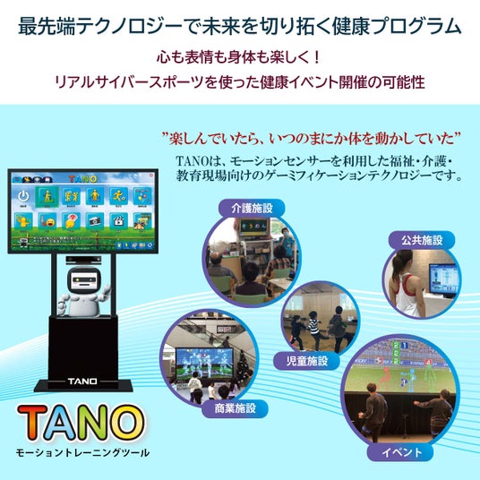TANOは、モーションセンサーを活用した福祉‧介護‧教育分野向けのゲーミフィケーションテクノロジーです。300種類以上の豊富なコンテンツを備えており、現場の声や利用者、専門家の意見を反映して開発されています。これにより、現場での利用が容易になり、利用者の自発的な参加を促進し、日常生活でのコミュニケーションを豊かにすることを目指しています。