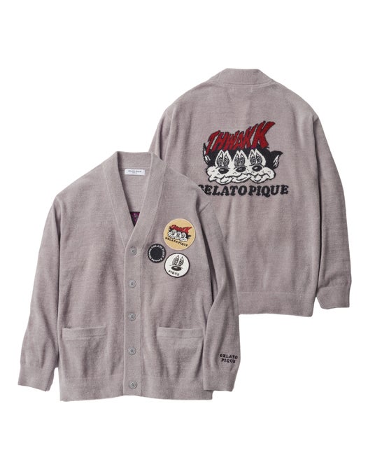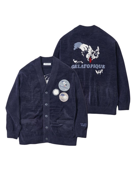 ふんわりと軽い‘エアリーモコ’のVネックカーディガンです。ボディカラーによって絵柄が異なり、胸元には同キャラクターのワッペンをあしらった、コレクション欲をくすぐるこだわりのディテール。フロントポケット付きのリラックスしたシルエットで、春先のアウターにおすすめです。