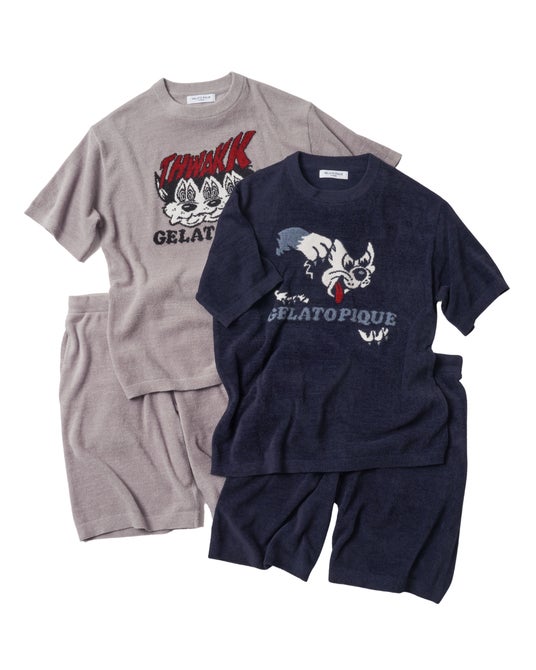 Kousuke ShimizuとGELATO PIQUE HOMMEのコラボレーションシリーズから待望の新作が登場!本コラボのために描き下ろしたキャラクターをあしらったルームウェアをはじめ、新しくアイマスクとトートバックを加えた計10型を展開します。