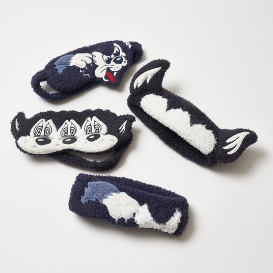 絵柄はそれぞれ2 種類で、ヘアバンドはキャラクターの耳を立体的にあしらった絵柄(ダークグレー)と、手のデザインがアクセントになった絵柄(ネイビー)からお選びいただけます。