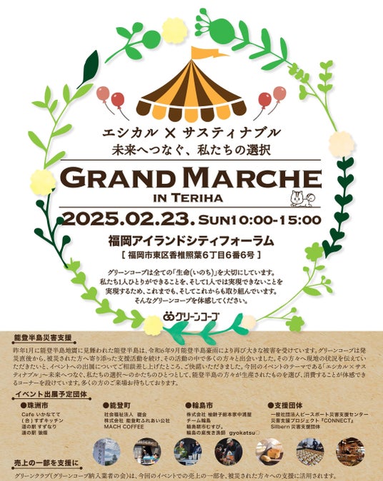 「Grand Marche in Teriha」開催決定!グリーンコープメーカー・生産者が福岡・照葉に集合 能登半島災害支援ブースで復興応援企画を実施