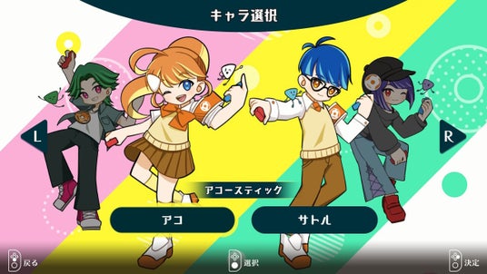 - キャラクターによってプレイ中のギターの音色が変わり、お気に入りのキャラクターを選択してゲームをお楽しみ頂けます。