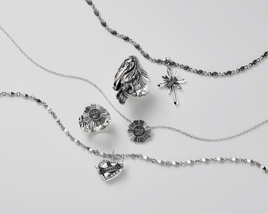幸せをもたらす後光を表現したネックレスなど全13型のジュエリーを展開。