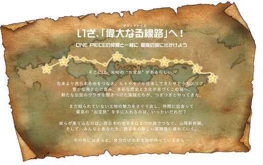 ※「偉大なる線路(グランドレイル)」とは「ONE PIECE」作中に出てくる「偉大なる航路(グランドライン)」をモチーフとし、航路≒線路として山陽新幹線を表現したオリジナルコンセプトコピーです。