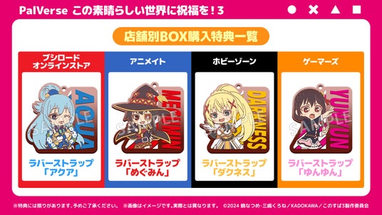 「PalVerse この素晴らしい世界に祝福を!3」をブシロード オンラインストアまたはアニメイト、ホビーゾーン、ゲーマーズにてBOXでご購入いただきますと、1BOXごとに購入特典がつきます!