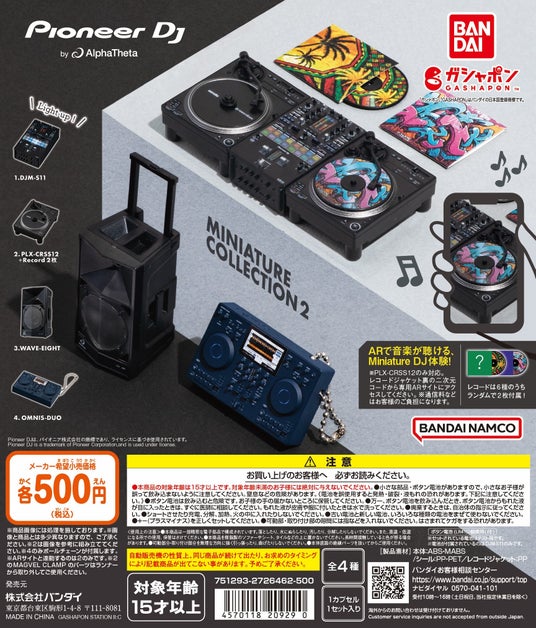 株式会社バンダイ ベンダー事業部(本社:東京都台東区)は、『Pioneer DJ by AlphaTheta Miniature Collection2』(1回500円・税10%込、全4種)として2024年12月第4週から順次、全国のガシャポンバンダイオフィシャルショップ、玩具売場、量販店、家電店などに設置されたガシャポン自販機シリーズにて発売いたします。