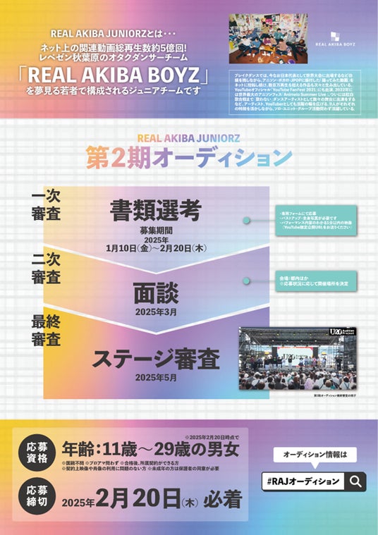 「REAL AKIBA JUNIORZ」第2期オーディション開催!「秋葉原を世界のエンタメの中心に」をテーマにダンス、歌、演技、等、限らず、自由に”人に負けないなにか”を持った若者を幅広く募集!