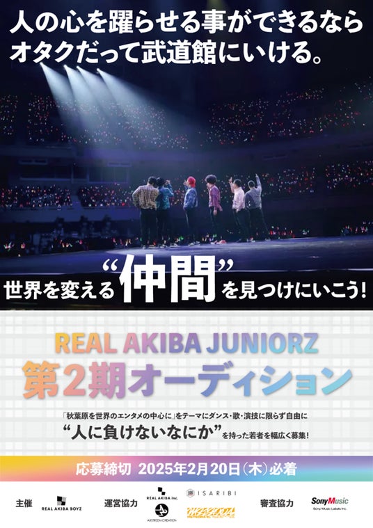 ISARIBI株式会社(代表取締役:榊原敬太/本社:東京都千代田区)が運営するクリエイターレーベル「METEORA st.」は、アニソン×ダンスエンターテイメントYouTuber「REAL AKIBA BOYZ」を夢見る若者で構成されるジュニアチーム『REAL AKIBA JUNIORZ』の第2期オーディションを開催することを発表いたします。