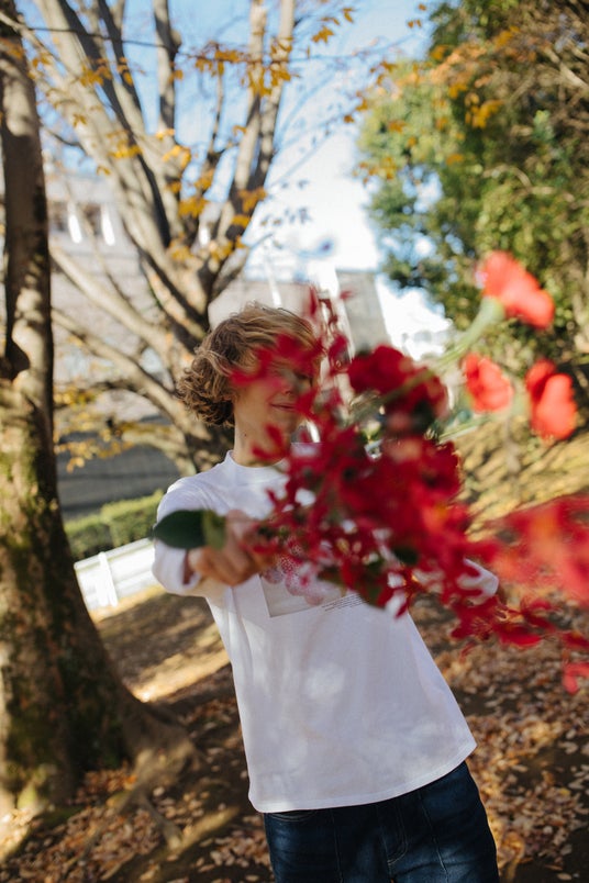 第一弾として、世田谷・梅丘のフラワーショップ「duft(ドゥフト)」と初となるコラボレーションアイテムを展開します。「duft」のオーナーが特別にフラワーアレンジメントを手がけ撮影をおこなったフォトTシャツにスカーフ、「SALON adam et rope」のブランドフィルターを通して共同でデザインをおこしたグラフィックTシャツ、持ち運ぶ生花への思いを込めたフラワーバッグの全4型をご提案します。