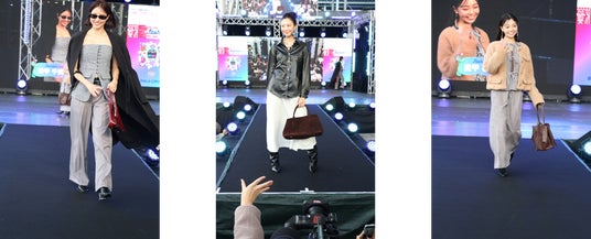 トップバッターを飾ったのは、若者に人気のマルチインフルエンサーさくらさん。オーバーサイズのカーディガンにチェック柄のスカートを合わせたコーディネートで登場しました。続いて、愛甲ひかりさんが千鳥柄のセットアップにプラットフォームブーツを合わせたコーディネートを披露し、会場を沸かせました。さらに、ショート丈のパンツにツイード素材のペプラムコートを合わせ、白いバラのチョーカーを付けたコーディネートの愛甲千笑美さんや、今季のトレンドカラーであるレッドのチェック柄アウターにロングブーツを合わせたエレガントな雰囲気の長崎百華さんなど、若い世代に人気のモデルたちが続々と登場し 、会場を華やかに彩りました。