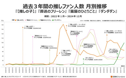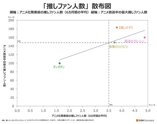 『【推しの子】』『葬送のフリーレン』『薬屋のひとりごと』『ダンダダン』、アニメ化前の推しファン人数からヒットポテンシャルを探る【GEM Partners】