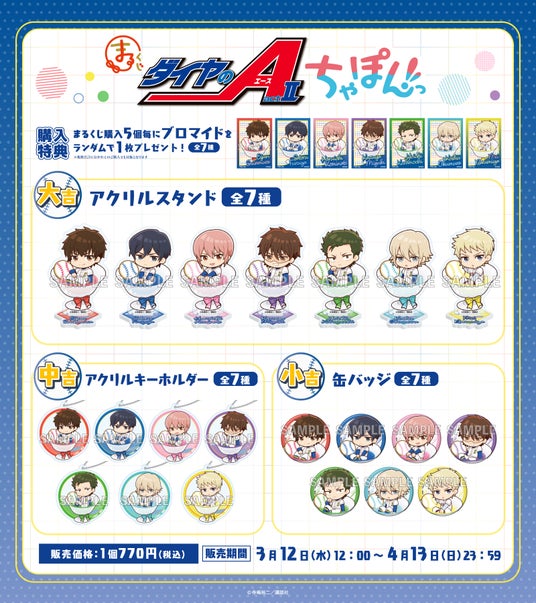 『まるくじ』にて、『ダイヤのA actII』の新規描き起こしちびキャラグッズが当たるくじが販売開始!