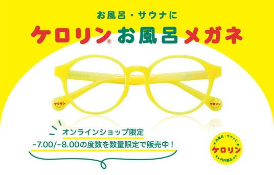 この度、これまでの-2.00~-6.00の5種類の度数の取り扱いに加えて、本日より数量限定で強度数(-7.00/-8.00)モデルの『ケロリンお風呂メガネ』を、メガネストアーのオンラインショップ限定(メガネストアー公式オンラインショップ、楽天市場)にて販売開始することとなりました。