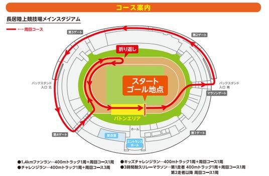 チームでタスキを繋ぐ「3時間耐久リレーマラソン」や、ご家族・ご友人と一緒に楽しみながらゴールを目指す「1.4kmファンラン」など、目的に合わせた4種目があります。また、小学生向けのセンコー陸上競技部(センコー株式会社)による「キッズ陸上教室」も予定しております。