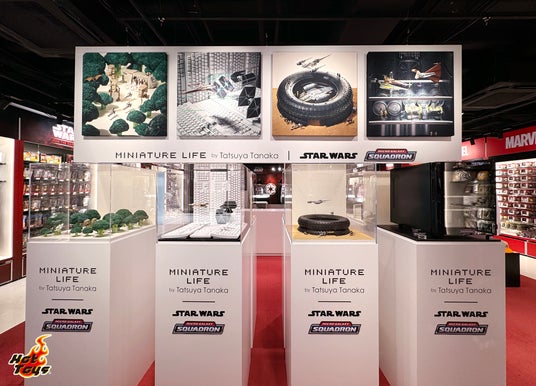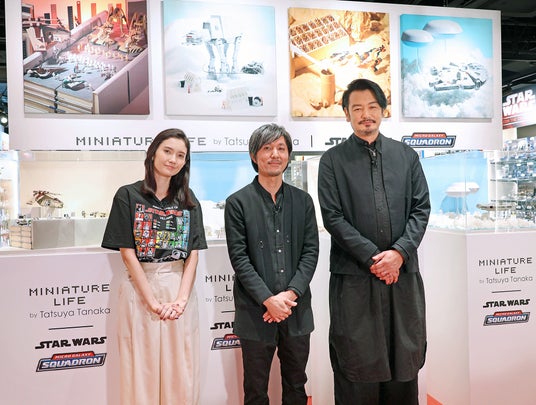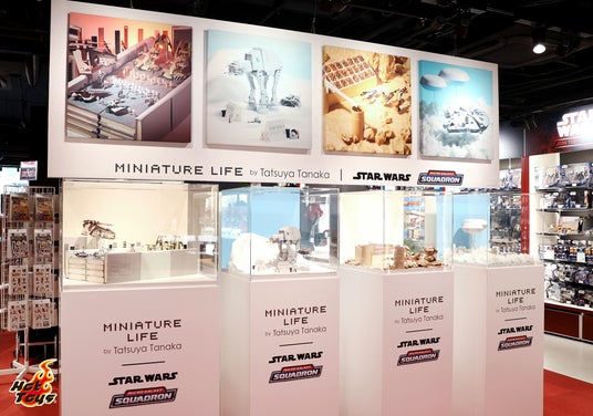 そして本イベント最大の見どころが、 Instagramのフォロワーは380万人を超え、世界的に人気のミニチュア写真家・見立て作家の田中達也による『スター・ウォーズ』の新作ジオラマ展示。ジャズウェア社が展開する「マイクロ・ギャラクシー」シリーズ(国内ではホットトイズジャパンが正規代理店として販売)を使用した合計8つの作品を見ることができる。