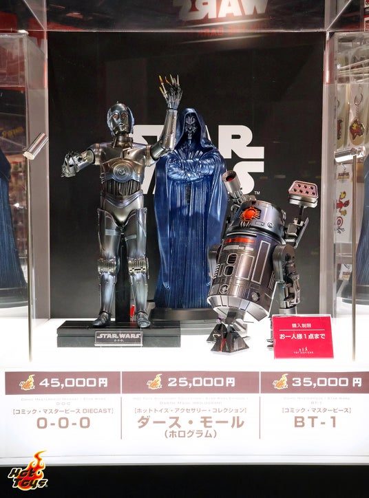 さらに奥に進むと、ホットトイズの最新1/6スケールフィギュアがずらっと展示されている。ダース・ベイダー(バトルダメージ)、アナキン・スカイウォーカー、グリーヴァス将軍など、発売前のプロトタイプ(試作品)はファン必見だ。