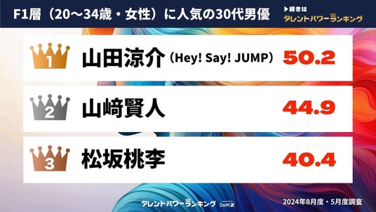 F1層では、Hey! Say! JUMPのメンバーで、2024年7月放送のフジテレビ系ドラマ「ビリオン×スクール」で主演を務めた男優が1位にランクイン。