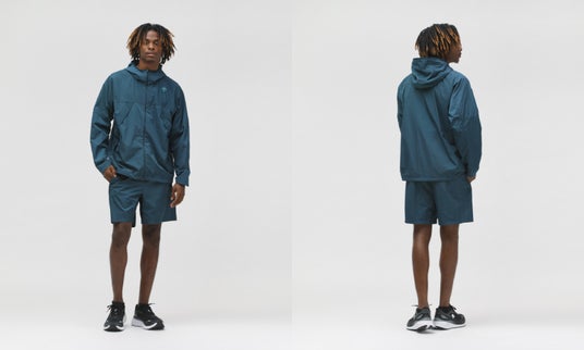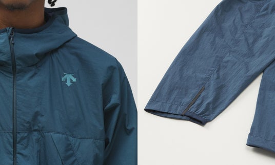 シワ感のある独特な風合いのナイロンワッシャー素材を使用したフルジップジャケット。フード裏はメッシュ仕様。耐久はっ水性に優れ、悪天候時の小雨を弾き落とします。発汗しやすい脇の下にはベンチレーション機能をもたせ、袖口には夜間の視認性を考慮した再帰反射機能のリフレクターを配置。ジャケットの裾はドローコードで絞ることが可能でトレーニング時のウェアのバタつきを抑えます。パンツは両サイドのポケットの他に背面にもファスナーポケット付きで貴重品の持ち運びにも便利な仕様です。