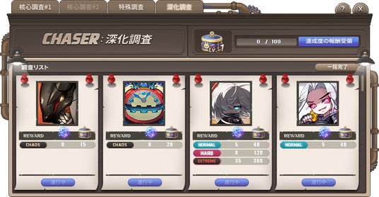 各軍団長たちの足跡を調査、追跡する各イベントやミッションに参加して「調査レベル」を上げ、様々な調査手当(報酬)を獲得することができます。