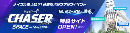 12月27日(金)~12月29日(日)に渋谷モディ(東京都渋谷区)で開催する体験型ポップアップイベント、「MapleStory CHASER SPACE in SHIBUYA」の最新情報を公開いたしました。