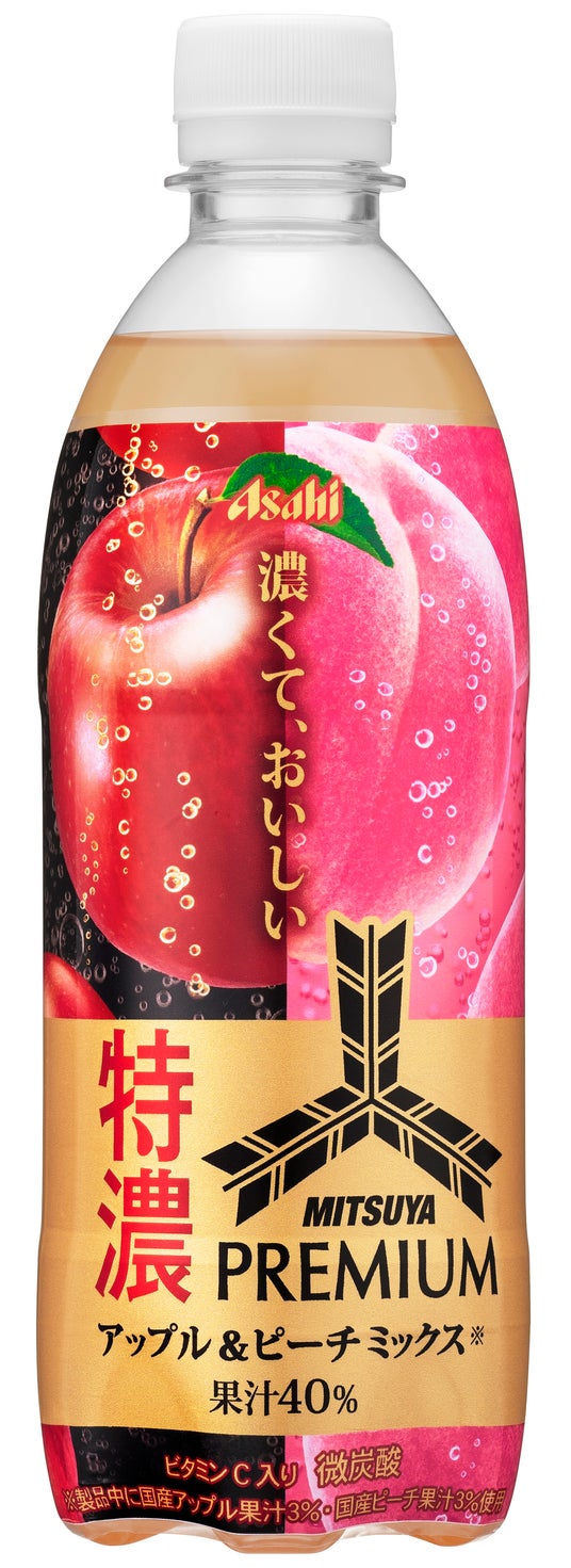 『三ツ矢特濃プレミアム アップル&ピーチミックス』果汁率40%で濃い味わいと搾り立ての香りが特長