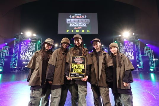 初代チャンピオンに輝いた優勝チームは埼玉県の武南高等学校の「"WARA"B-BOYZ」に決まりました。18人のメンバーからなるブレイキンのチームで、ダイナミックかつハイテンション、次々繰り出す見せ場の勢いを落とすことなく最後まで怒涛のブレイキンを繰り広げた点がジャッジから高い評価を得ました。"WARA"B-BOYZにはウィナーボード、優勝トロフィーと初代チャンピオンの称号が贈られました。代表者はチーム名を呼ばれ「ありがとうございます!」と高らかに感謝の気持ちを叫び、「自らが納得のいくダンスで楽しみ観客のみなさんも楽しませることができて、さらに優勝ができて非常に嬉しい」とコメントしました。また、チームメイト、応援してくれたクラスメイト、顧問の先生方にも感謝の気持ちを述べ、「めっちゃ嬉しい。やべぇ」と素直な感情を吐露する一幕も。「自分たちを褒めたい」と優勝の気持ちを締めくくりました。