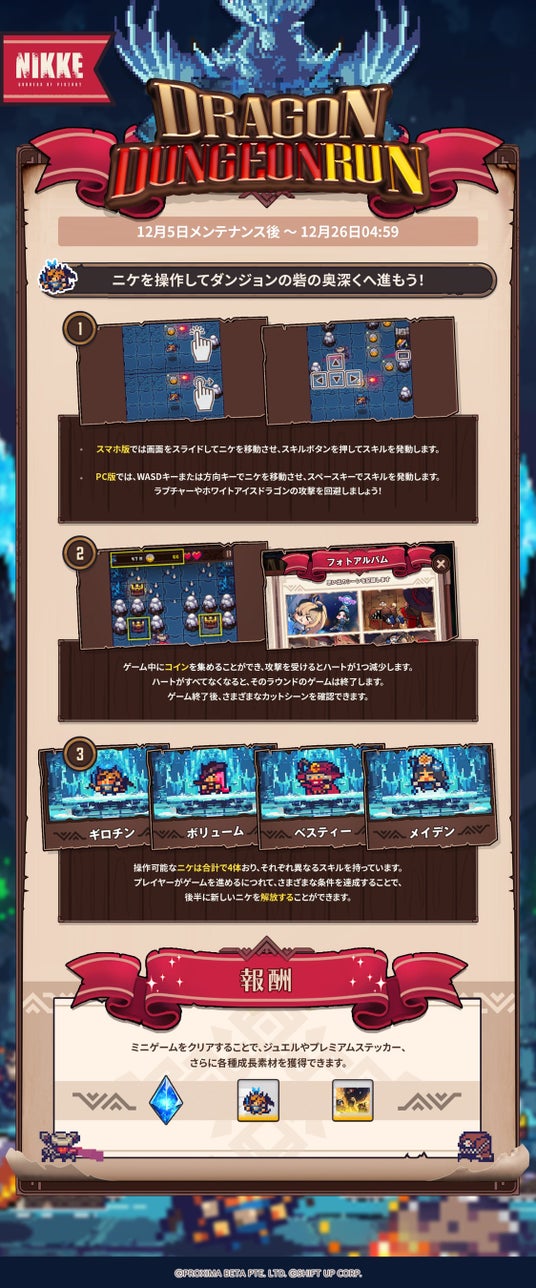 最新バージョン「ICE DRAGON SAGA」と関連イベントの詳細は、公式X(旧Twitter)「@NIKKE_japan」または公式サイトをご覧ください。