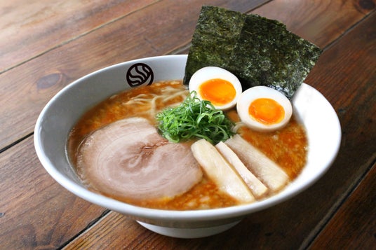 鶏× 豚骨のW スープに魚介の旨味たっぷりの特製かえしでコクを加えた絶品スープ。香り華やぐ削りかまぼこが彩る看板商品。