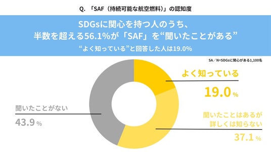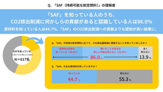 SAFの認知度は19.0%にとどまる一方、63.3%が航空業界のCO2削減取組を認識。期待度と支援意向の高さが示すポジティブな結果も!