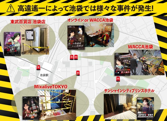 池袋ミステリータウンは2023年からミステリーマンガ『金田一少年の事件簿(※)』とのコラボアトラクションシリーズ「地獄の傀儡師」高遠遙一の池袋犯罪ガイドマップツアー を順次リリースして参りました。本シリーズでは金田一一の最大の宿敵、高遠遙一が完全犯罪の街・池袋を生み出そうと暗躍しており、プレイヤーはそれを阻止すべく謎を解明していきます。