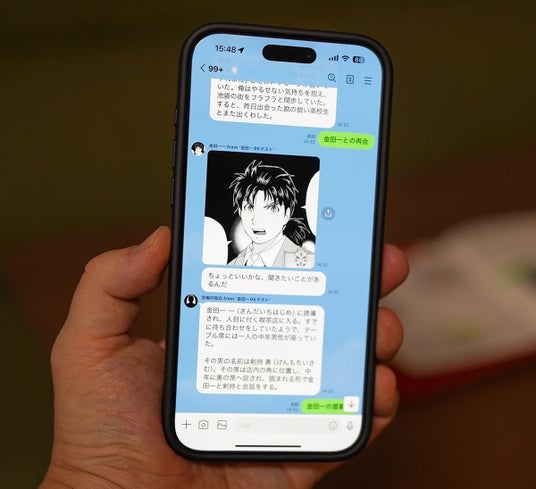プレイ中のLINE画面の一部。金田一一とのやりとりを通じて作品世界を楽しむことができる。