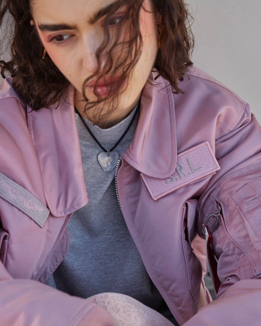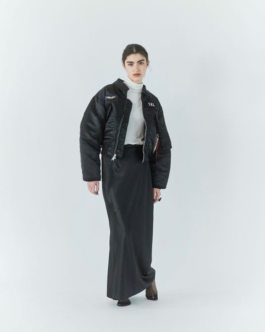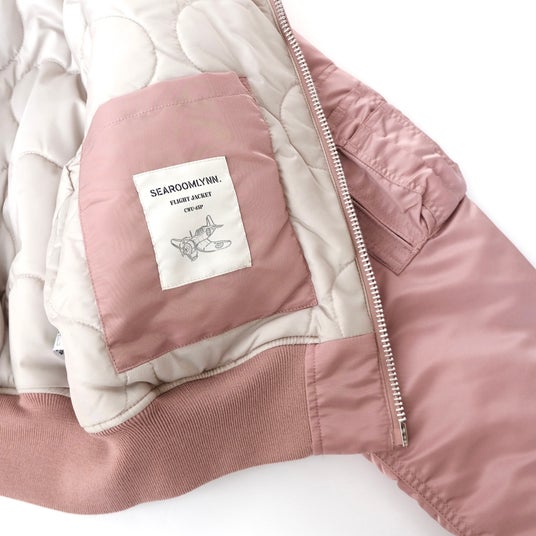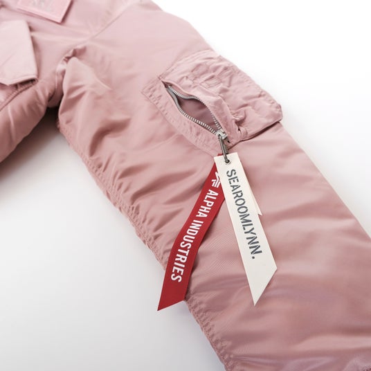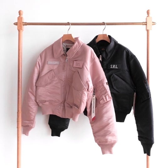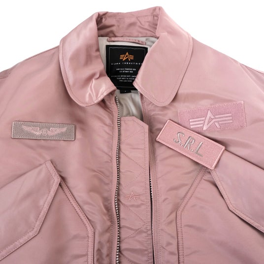 本コラボレーションは、60年以上の歴史があるミリタリーブランドならではの本格的で高品質かつ機能的なALPHA INDUSTRIESとSEA ROOM LYNNのクリエイティビティを融合させた珠玉のコラボレーションアイテム。ALPHA INDUSTRIESのCWU-45Pのシルエットを基調とし、女性が着やすいように丈感や全体的なシルエットバランスなどを細かく調整をした1着。そして胸元のベルクロ式パッチ、シガレットポケットにはそれぞれのロゴ入りリボンや内ポケットにはオリジナルの飛行機ネームなど要所に散りばめられたデザインもポイントです。