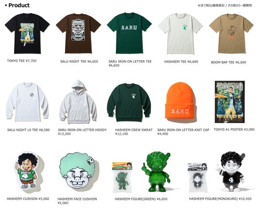 コラボレーションアイテムには、井上三太氏によるKineticsのために描き下ろしたイラストを落とし込んだKinetics×TOKYO TRIBEのアパレルアイテムを展開いたします。その他にもTOKYO TRIBEに登場する、絶大な人気を誇るキャラクター「ハシーム」のソフビがKinetics限定バージョンとなって登場します。