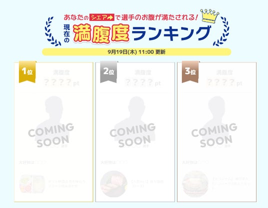 ♦シェアで選手のお腹が満たされる!?「満腹度ランキング」を公開