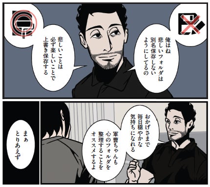 心配性で、他人の目を気にしがちな妻・軍曹は「~しちゃったかも…」「さっきの伝え方、違ったかな?」と自身の言動や行動を振り返り、日々 ”自分反省会” を開催。
