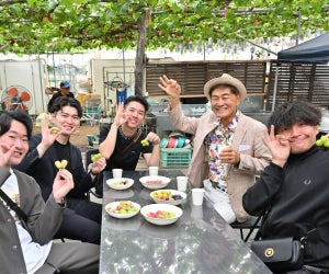 代表取締役会長 渡辺喜久男といーふらん社員のマスカット狩り体験