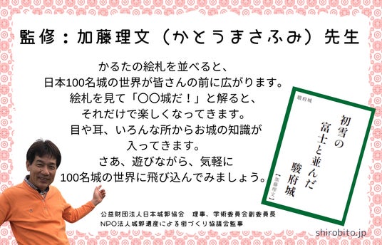 日本城郭協会理事・加藤理文先生が監修、かるたを熱烈おススメ! 加藤先生の読み札もある!