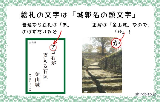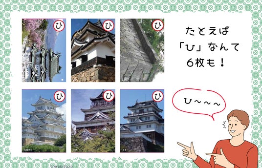 絵札のひらがなは、読み札の頭文字ではなく、お城の名前の頭文字! だから「同じ文字の絵札」が複数ある!