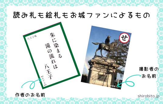 読み札用の五七五も、取り札用の絵札の画像もすべて、お城ファンから募ったもの!読み札100、取り札100で総数200枚!