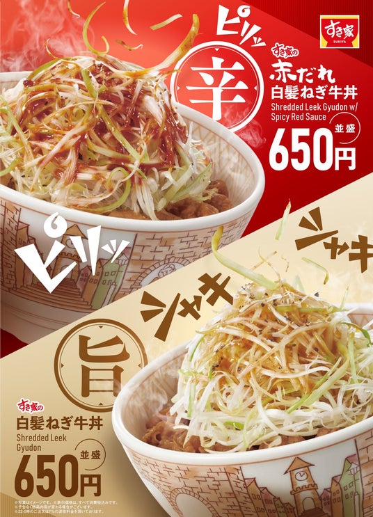 ぜひこの機会にお近くのすき家で、「白髪ねぎ牛丼」「赤だれ白髪ねぎ牛丼」をお楽しみください。