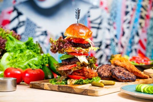 「手」で食べる楽しさを引き出すためにご用意した料理は、テーブルの上に広がる畑から、まるで菜園で収穫するかのように手で摘み取る野菜や、自身のお好みに合わせて20種類以上の具材を組み合わせ、「手」でバランスを取りながら、具材を豪快に積み重ねる楽しさを味わえるハンバーガー、そしてトッピングを自由に選べ、「手」で崩しながら、一口一口贅沢にいただくオリジナルサンデーと多彩なメニューが揃います。