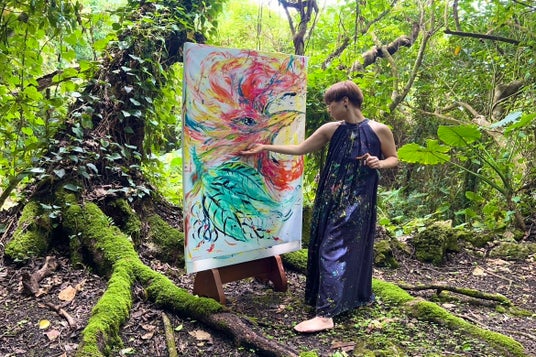 兵庫県丹波篠山市出身。幼い頃から憧れた画家への夢を諦められず、独学で絵を描きはじめる。旅行で訪れた沖縄の自然の色彩に感動し、2014年移住を決意。14年間続けた介護職を2018年6月で卒業。指で描くことで想いをダイレクトに伝え、生命力の表現をめざし『強さ』『優しさ』『あたたかさ』がこもった世界に一つしかない作品を見てくださる方の心に届けたい気持ちで描く。
