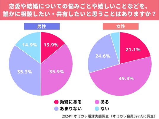 恋愛・結婚トークは女性の方が積極的。しかし男性は「相談したくてもできない」孤独な状況?