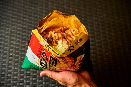 詳細⇒ポテトチップスにケバブを入れた新食感ファストフード!外はこんがり中は柔らかくジュージなケバブチキンとチップスのサクサク感がマッチした一品